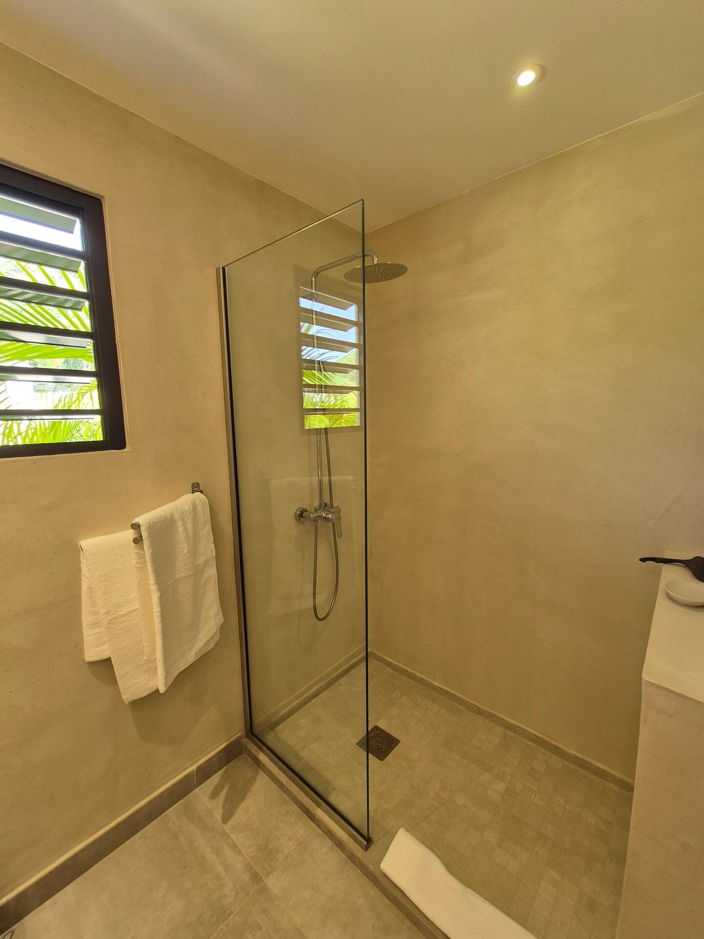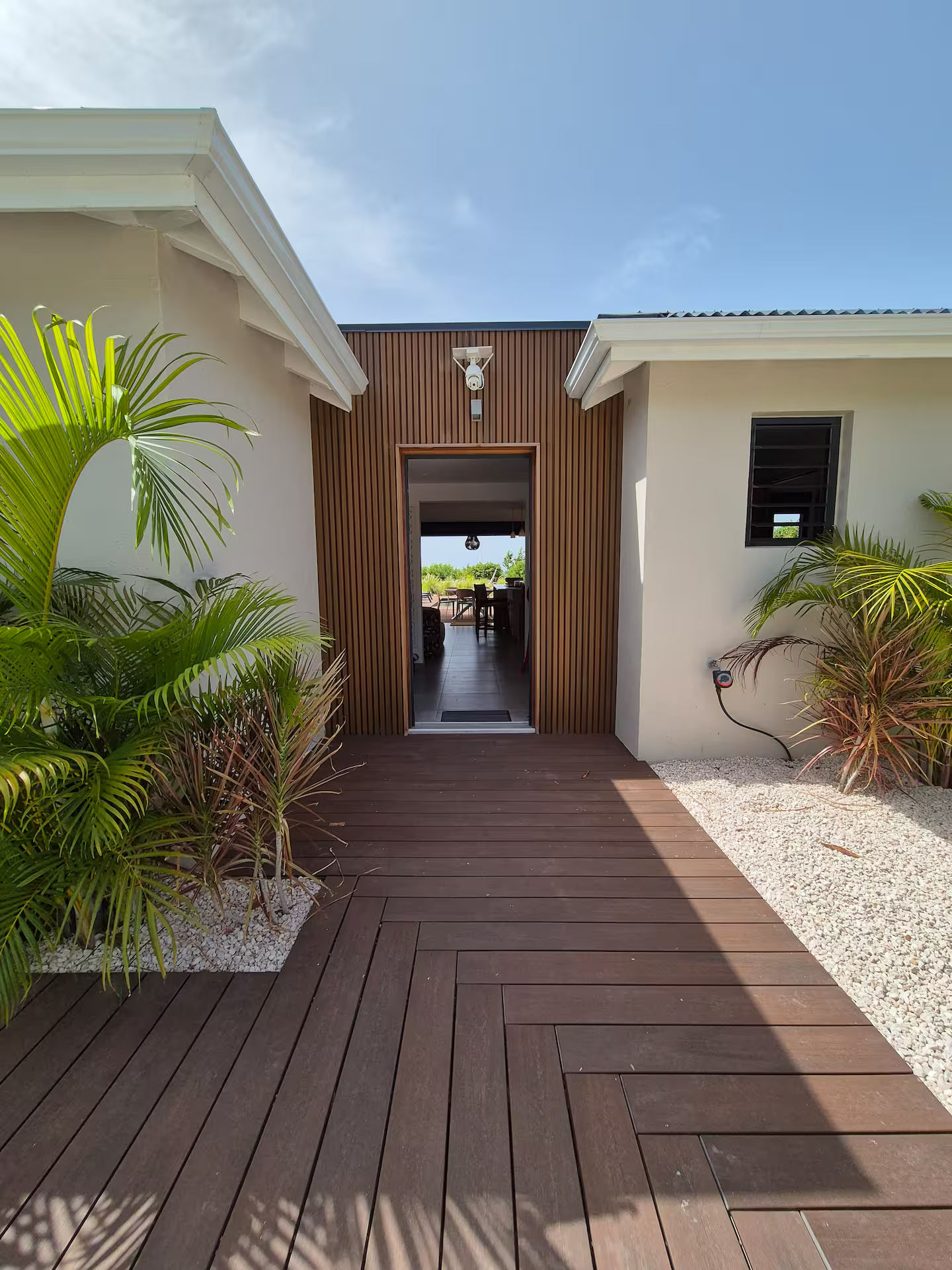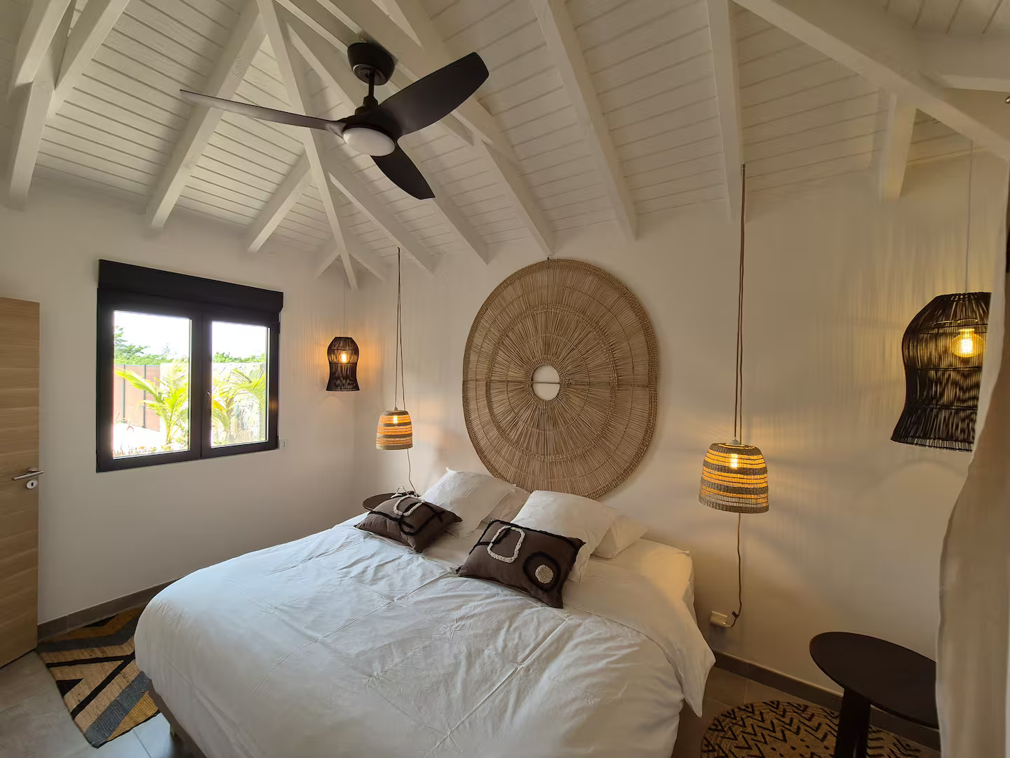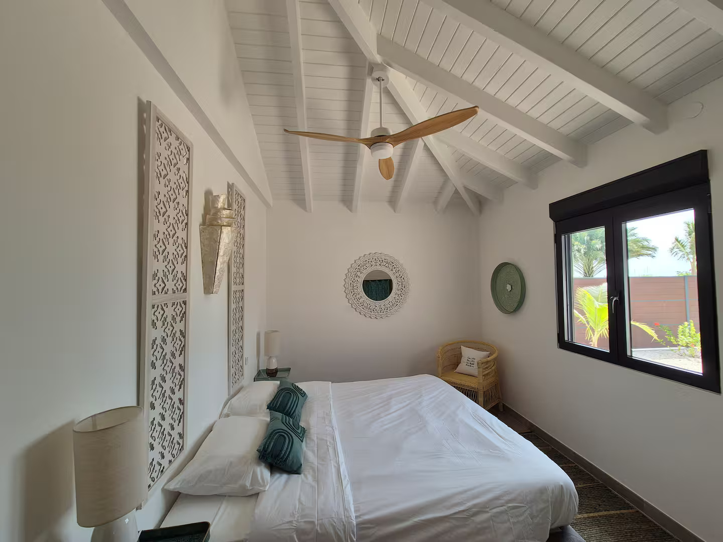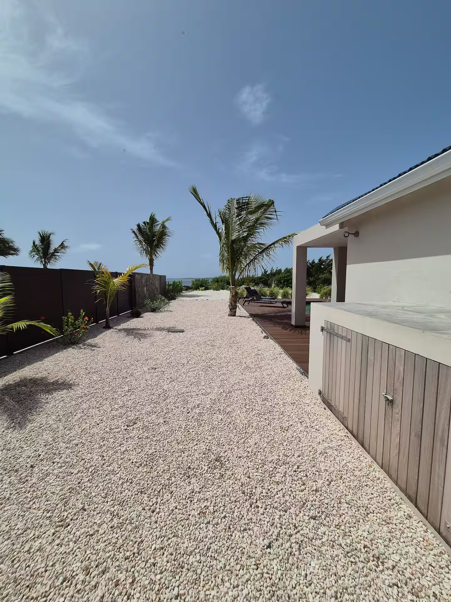 The villa gives you full access to the pool, the beach, and the beautiful marine park right at your doorstep. Parking for two cars is included.
