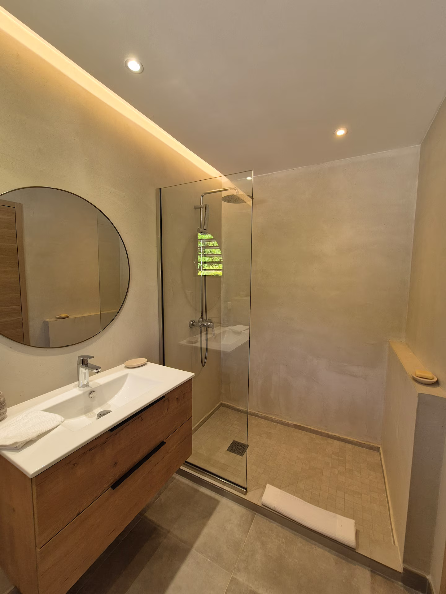Inside, the villa is bright and spacious, with a cozy living room, comfortable beds, and everything you need for a relaxing stay. Outside, the terrasse and garden offer the perfect spot for long breakfasts, sunset drinks, or quiet evenings under the sky.
