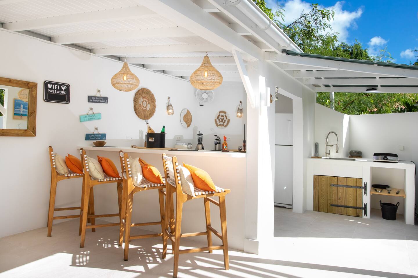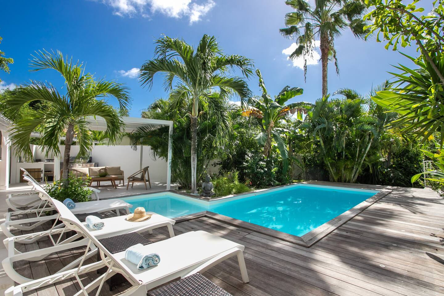 Welcome to paradise. Only 4 minutes from the famous Orient beach and equipped with all the essentials, this place will deliver that peaceful serenity you have been seeking. Spend the day around the pool and BBQ, or keep inside the house fully air conditioned… it’s up to you !. Followed by a night at the Orient Bay Village and restaurants , or relaxing on the beach with a delicious cocktail regarding the Caribbean sea. Whether you’re planning for a tropical vacation or looking for a longer stay..