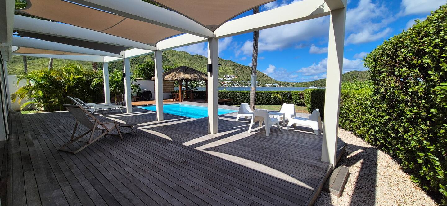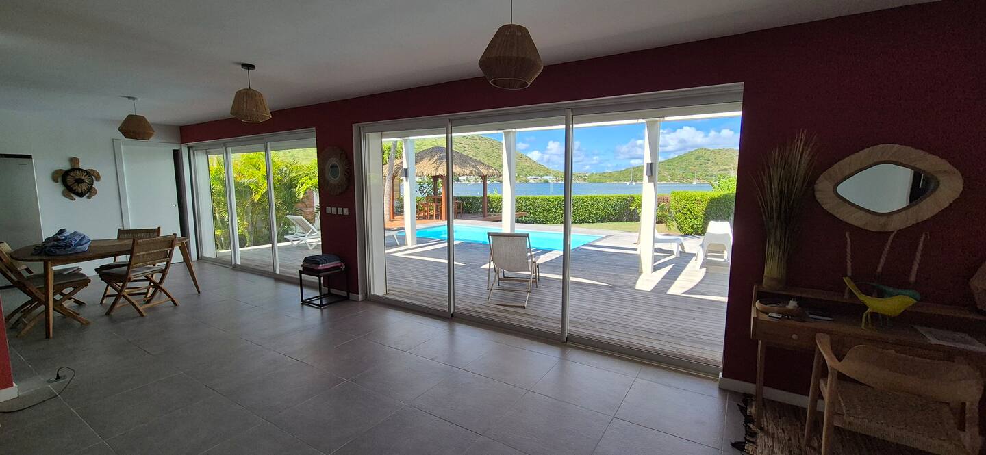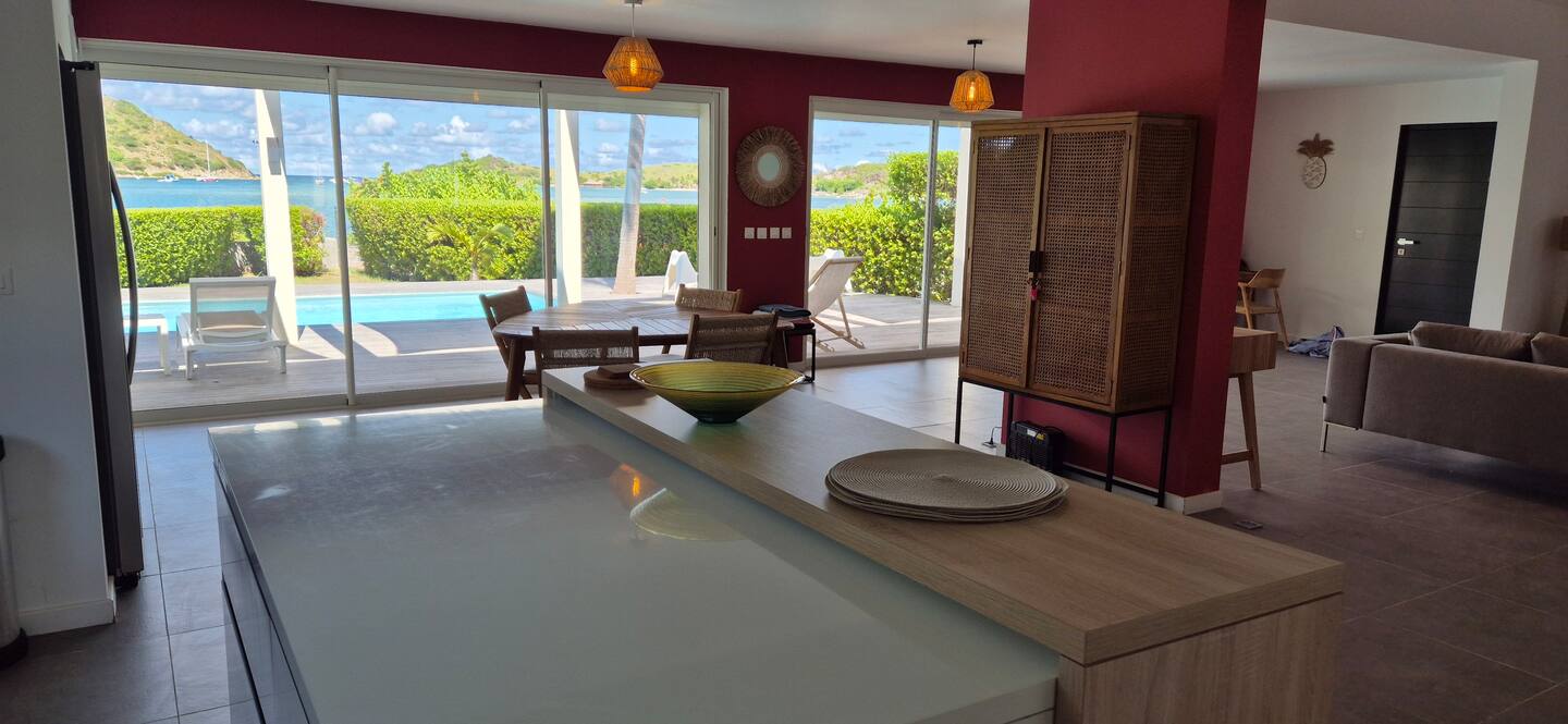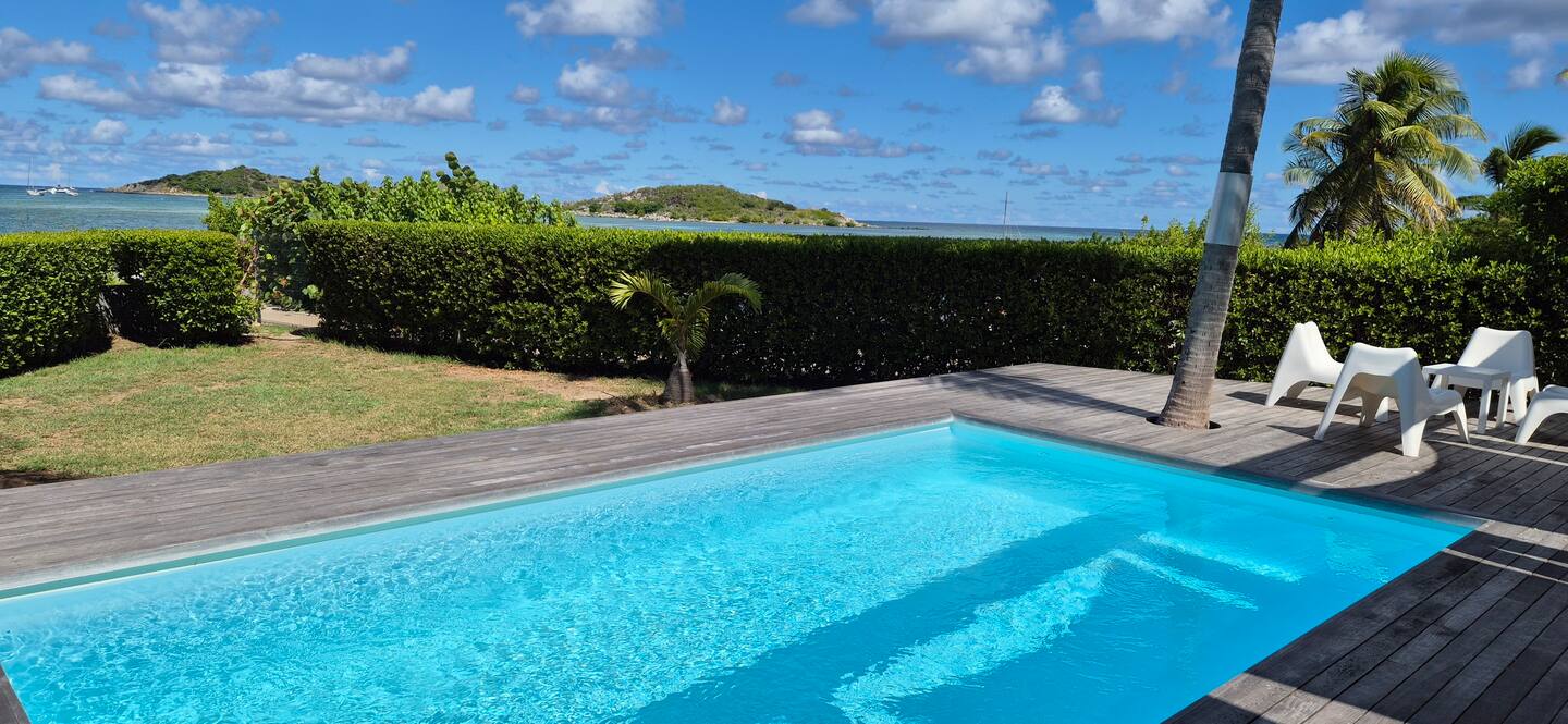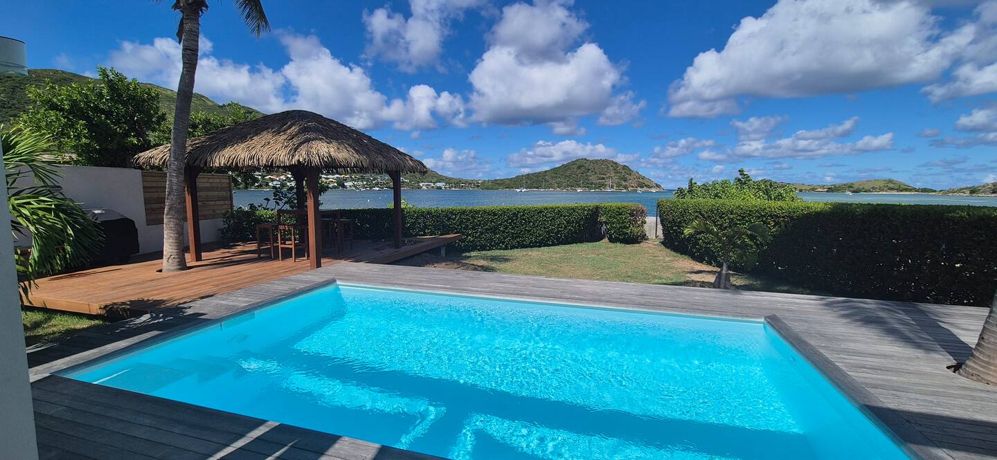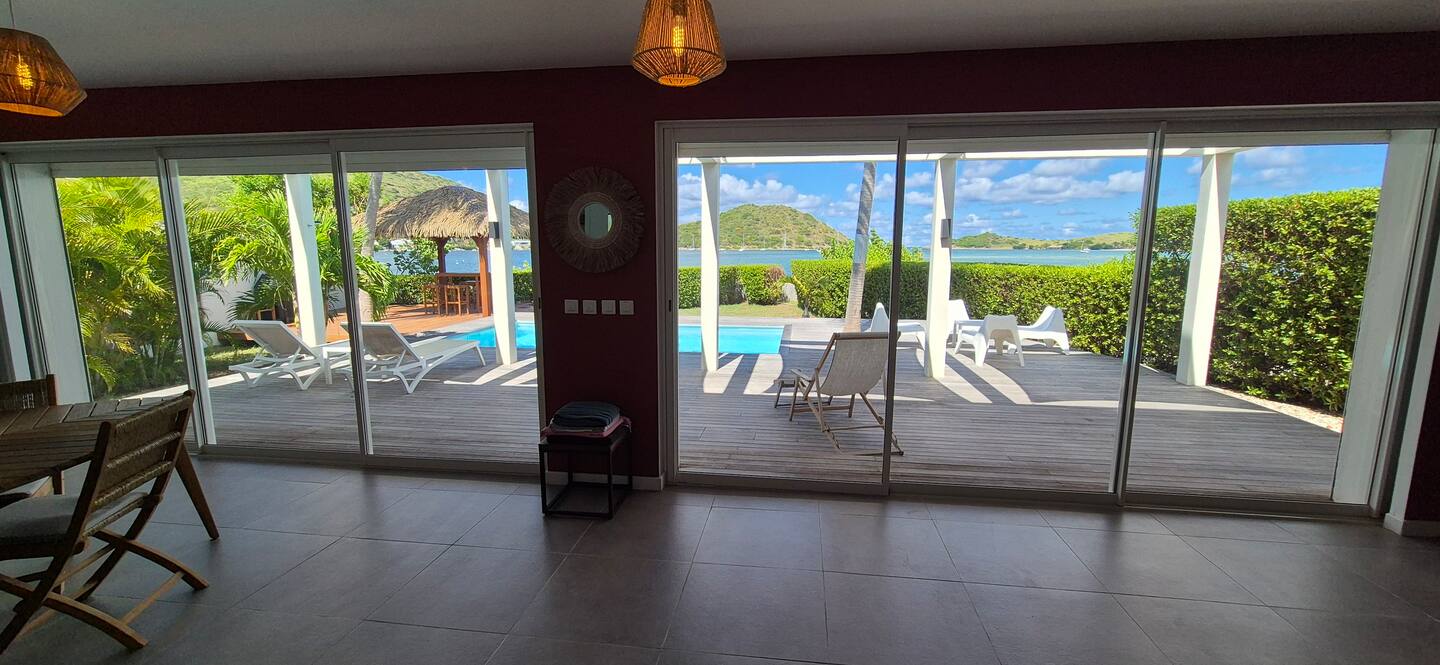 Villa Marine — feet in the water, facing the bay of Pinel Island