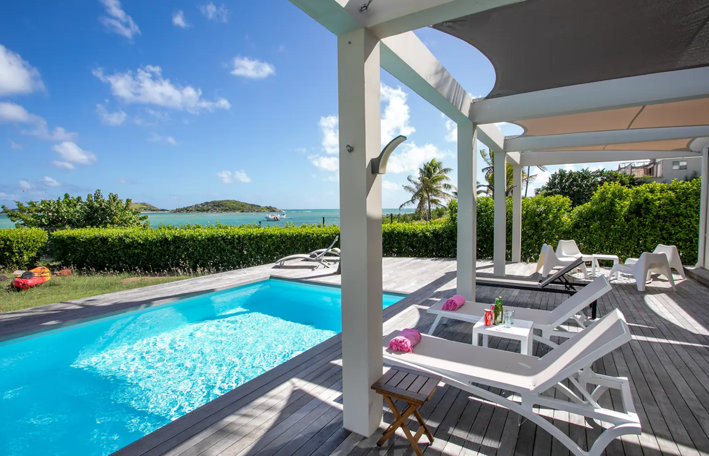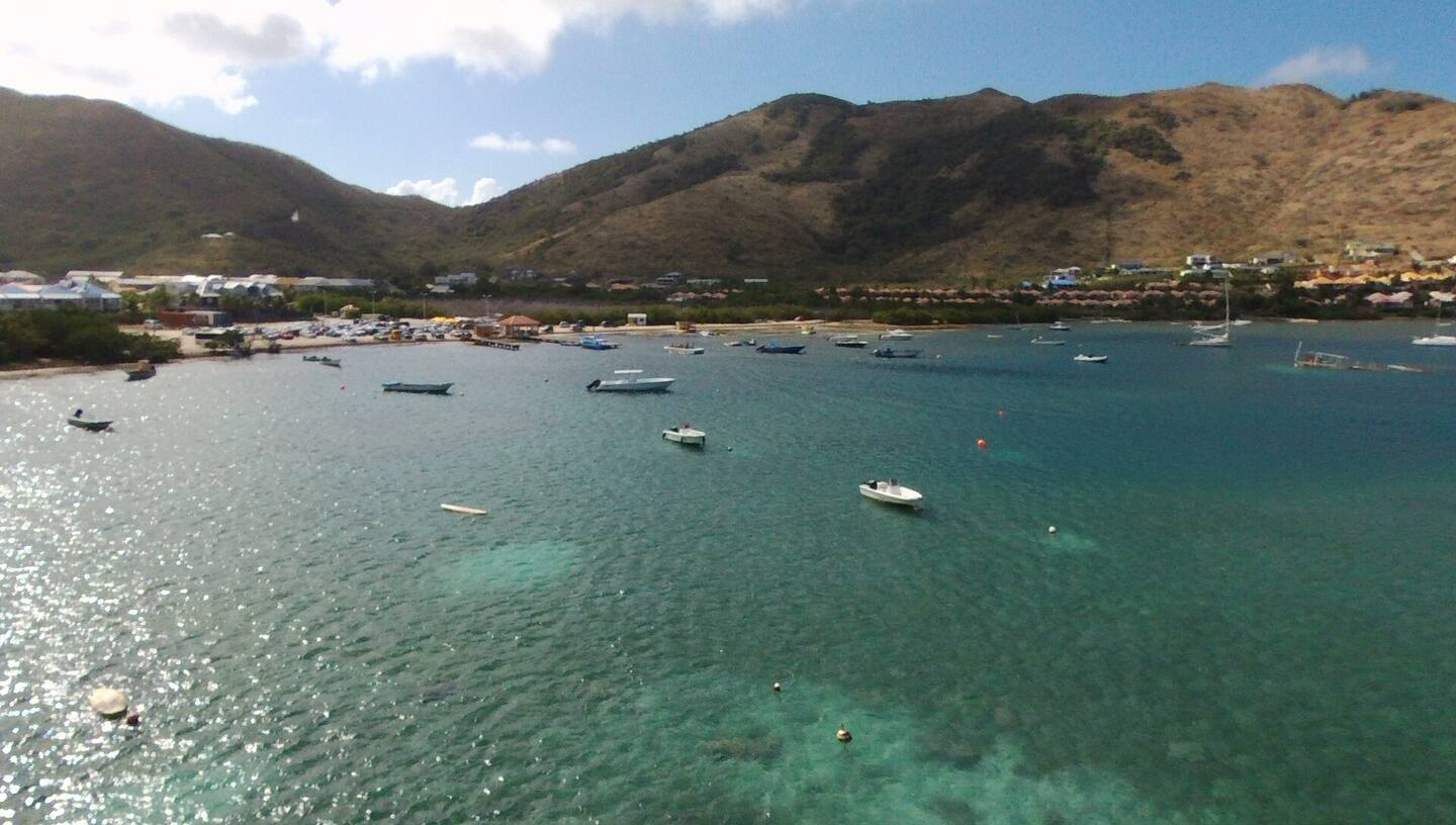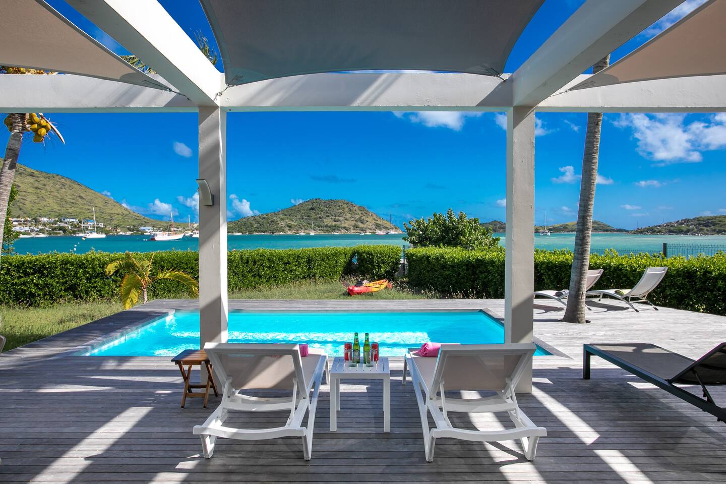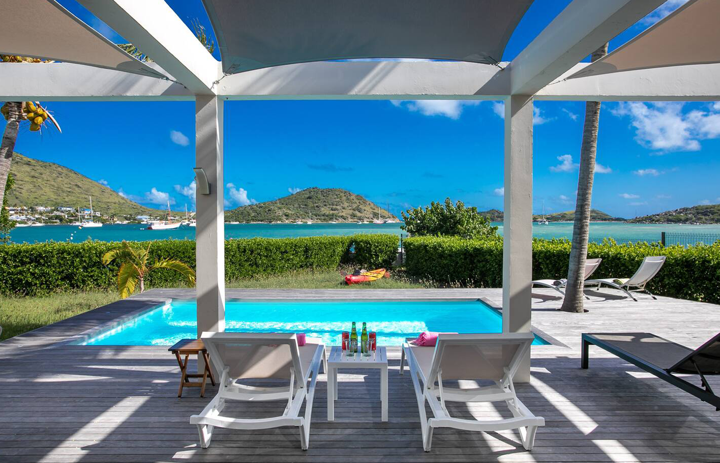Villa Marine — feet in the water, facing the bay of Pinel Island